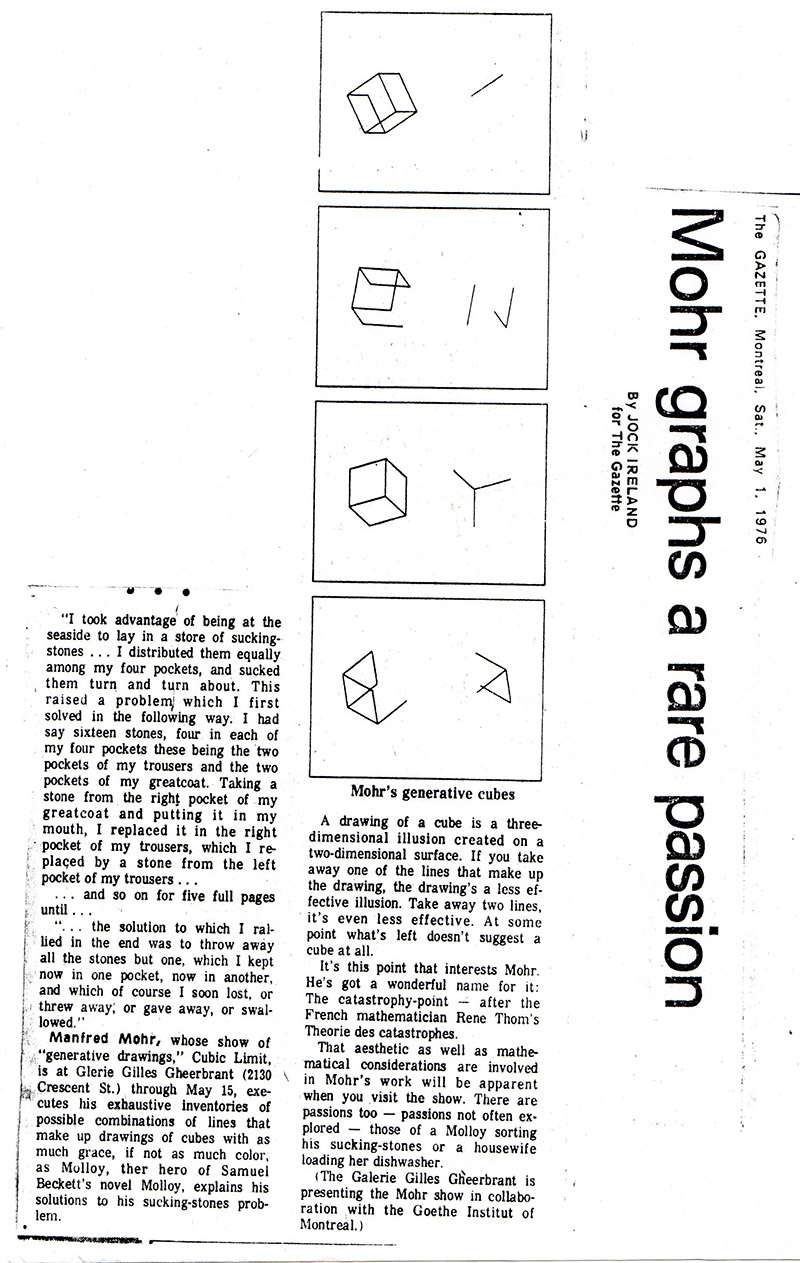 | Manfred Mohr - Cubic Limit, Galerie Gilles Gheerbrant, Montreal, Canada, 27. Apr - 15. May 1976: | ||||||