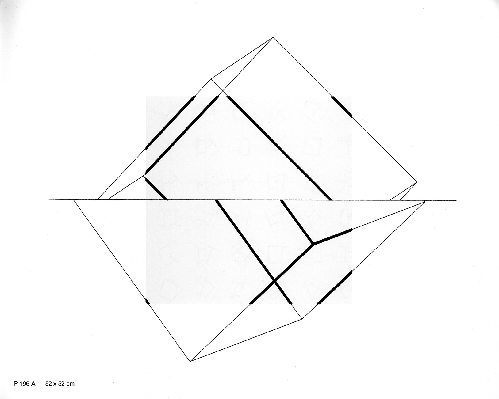 - Gray surfaces in drawings (ex. P196-A), are made by overlaying 2 pieces of paper each with a different drawing: The top paper is slightly transparent and contains the line drawing. The bottom paper contains a drawing of a black square. | ||||||
